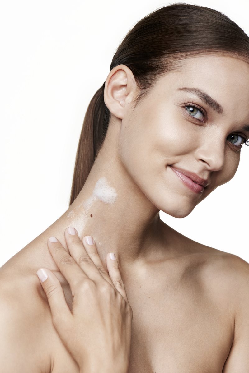Poursuivez avec un produit de soin approprié. Nous recommandons le Sérum Triple Action DermoPure et le Gel-Crème SPF 50+ SUN OIL CONTROL pour le visage et la Crème Corps Triple Action DermoPure pour le corps.