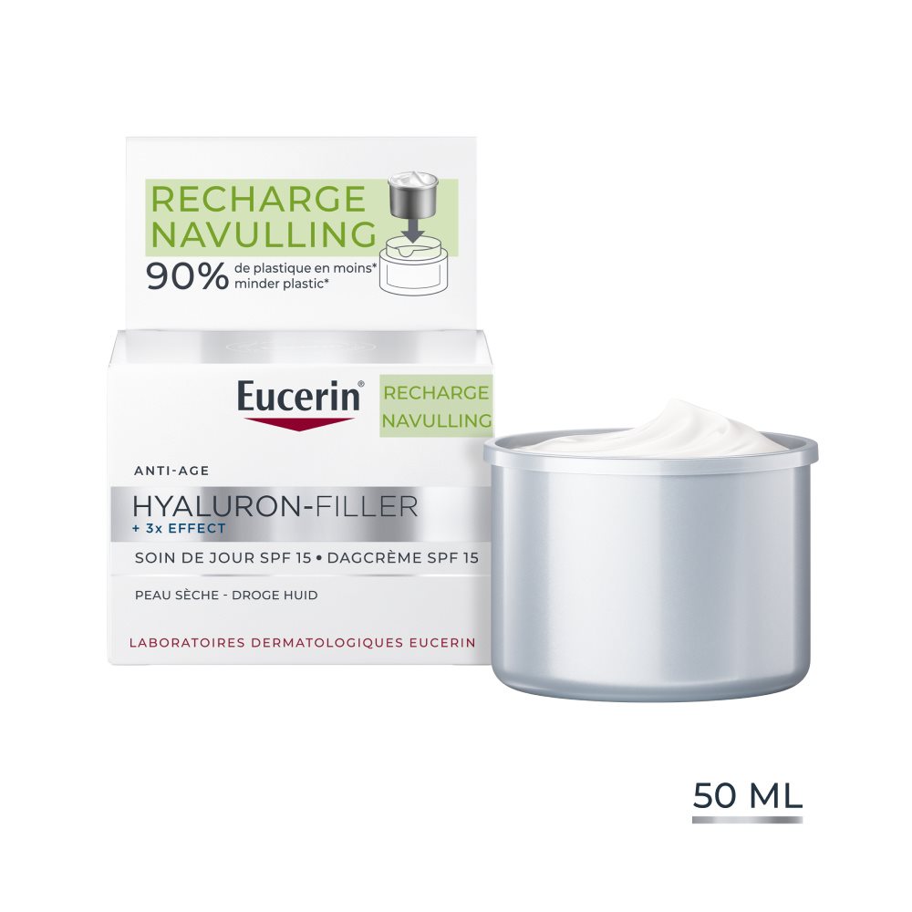 Cette recharge pratique permet de réduire les déchets plastiques. Elle contient 90 % de plastique en moins que le pot classique, et est compatible avec tous les pots de soin du visage Eucerin.